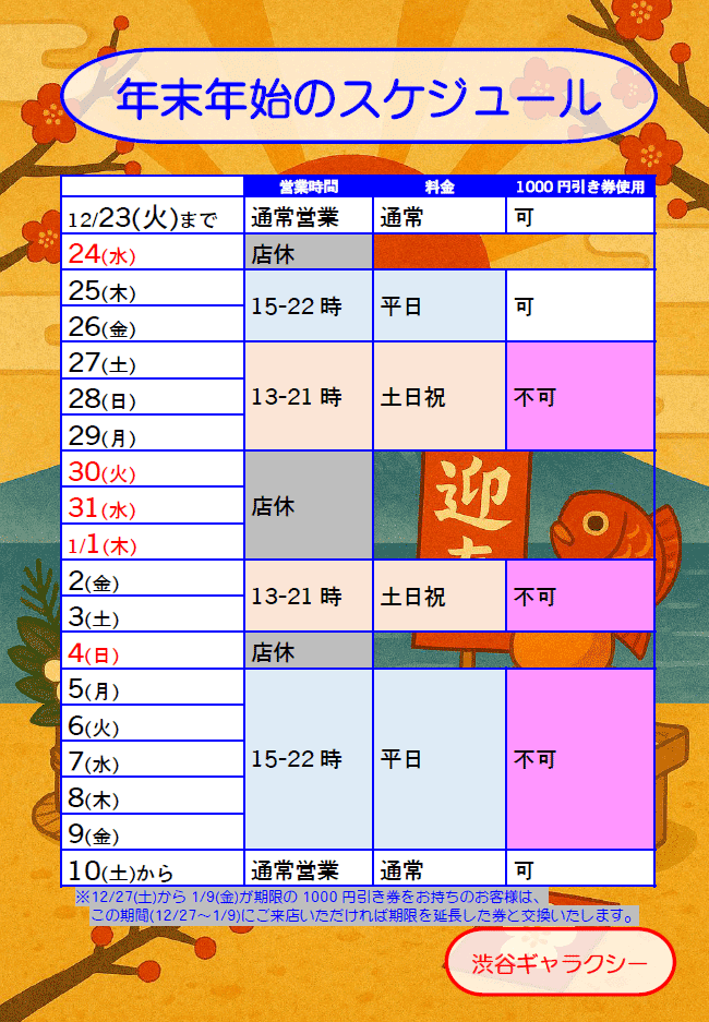 営業時間のお知らせ